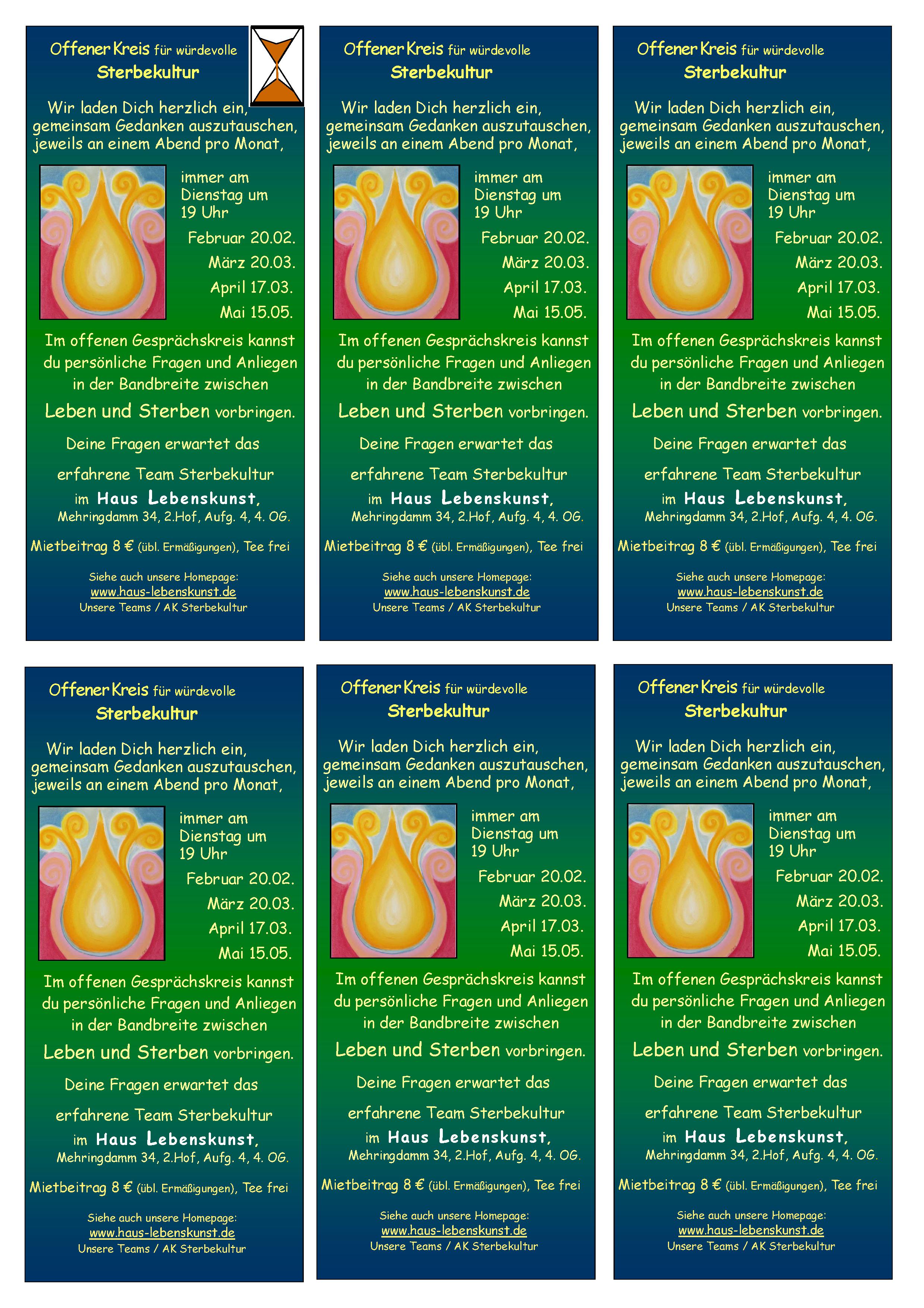 Der Offene Arbeitskreis für eine würdevolle Sterbekultur lädt einmal im Monat dienstags im Haus Lebenskunst ein zu einem Gedankenaustausch.