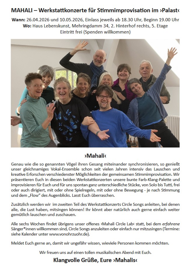 MAHALI – Werkstattkonzerte für Stimmimprovisation im ›Palast‹