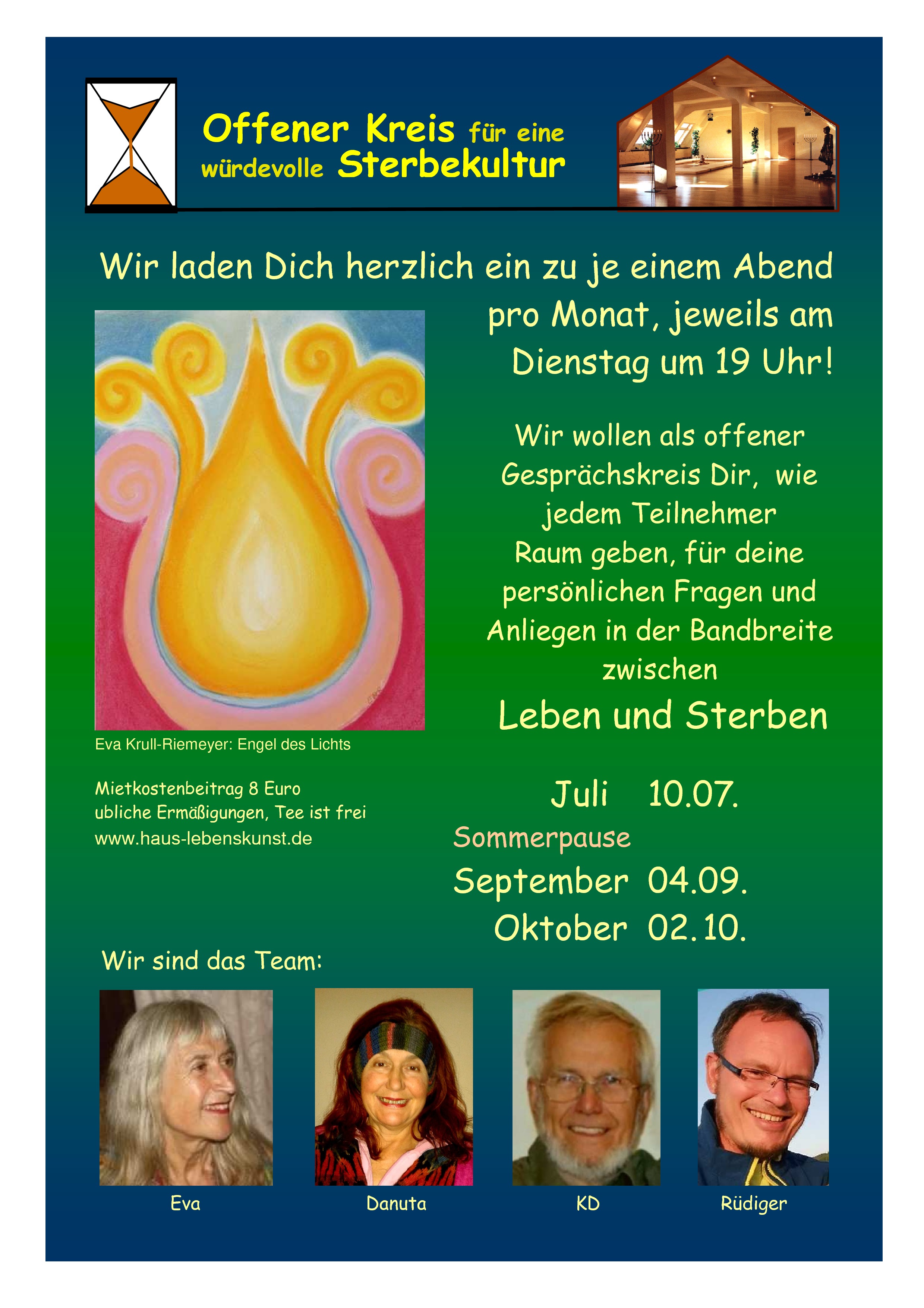 Der Offene Arbeitskreis für eine würdevolle Sterbekultur lädt einmal im Monat dienstags im Haus Lebenskunst ein zu einem Gedankenaustausch.