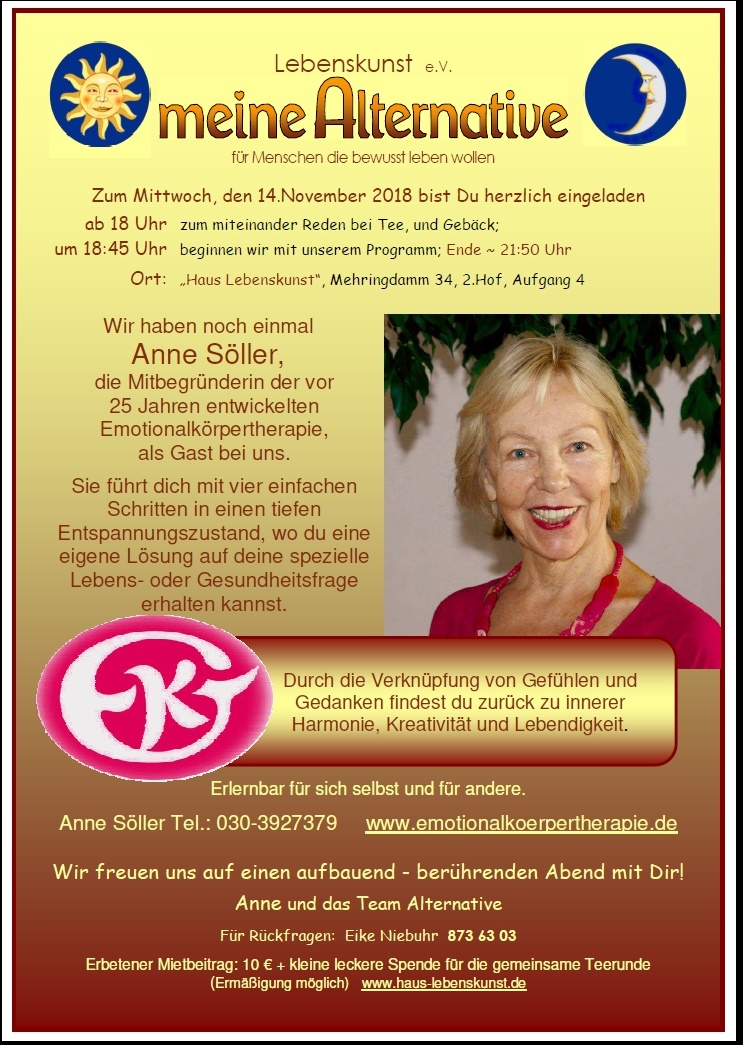 Das Team von "meine Alternative" lädt einmal im Monat mittwochs im Haus Lebenskunst zu einem gestalteten Abend ein, immer mit Gedankenaustausch.