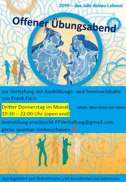 dieser monatliche Übungsabend hilft Dir, Deine Frank Fiess Erfahrungen zu vertiefen.