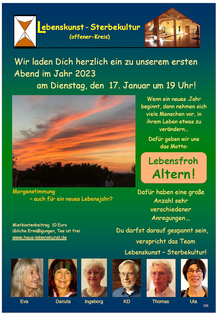 Wir laden einmal im Monat dienstags im Haus Lebenskunst ein zu einem Gedankenaustausch.
