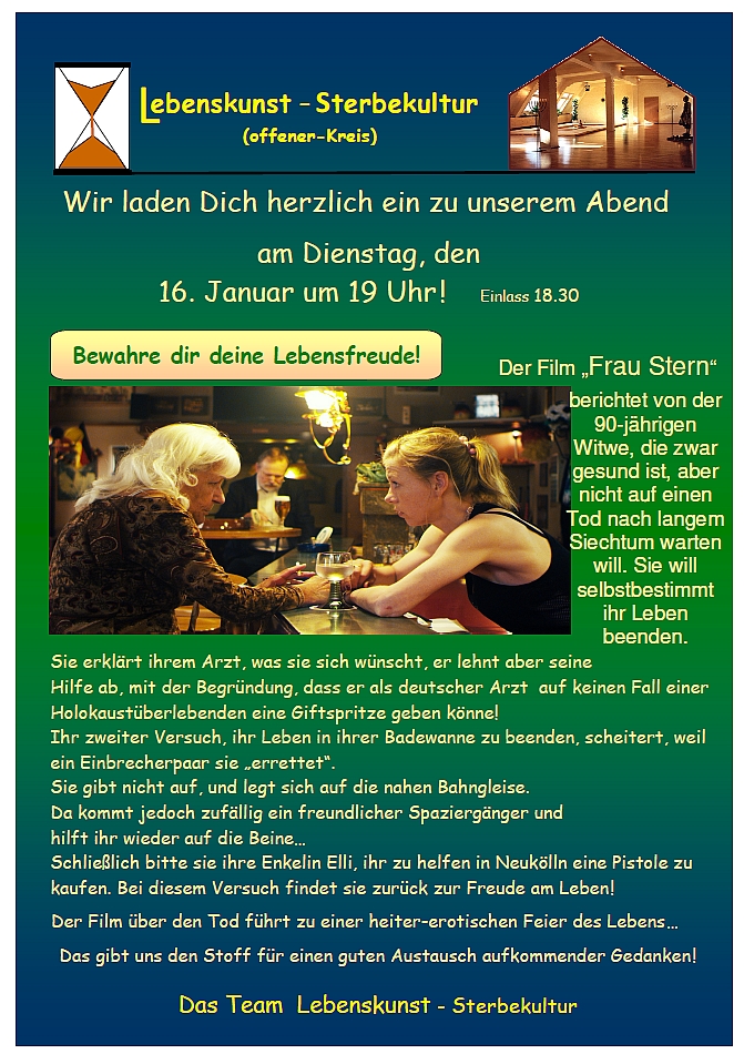 Der Offene Arbeitskreis Lebenskunst - Sterbekultur lädt einmal im Monat dienstags im Haus Lebenskunst ein zu einem Gedankenaustausch.